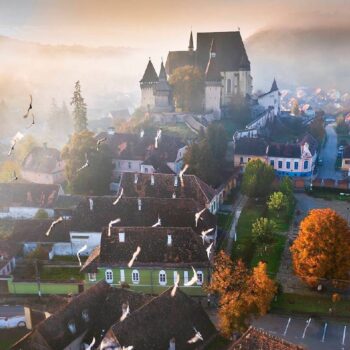A small selection of destinations in Romania: Brasov / Kronstadt, Transylvania, Bran Castle / Törzburg, Moldavian monasteries, the Danube Delta, and Cantacuzino Castle, the filming location of the Netflix series “Wednesday.”