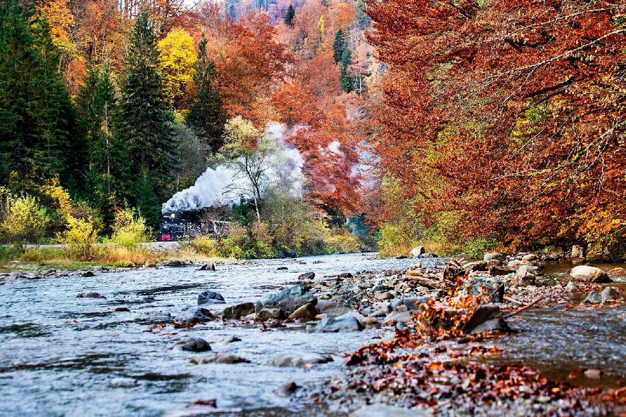 But where to start, anywhere… for example, in the city of Resita in Caras-Severin County, at the city’s open-air locomotive museum. A wonderful travel destination surrounded by greenery and many mountains.
