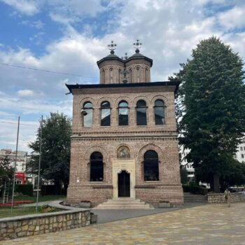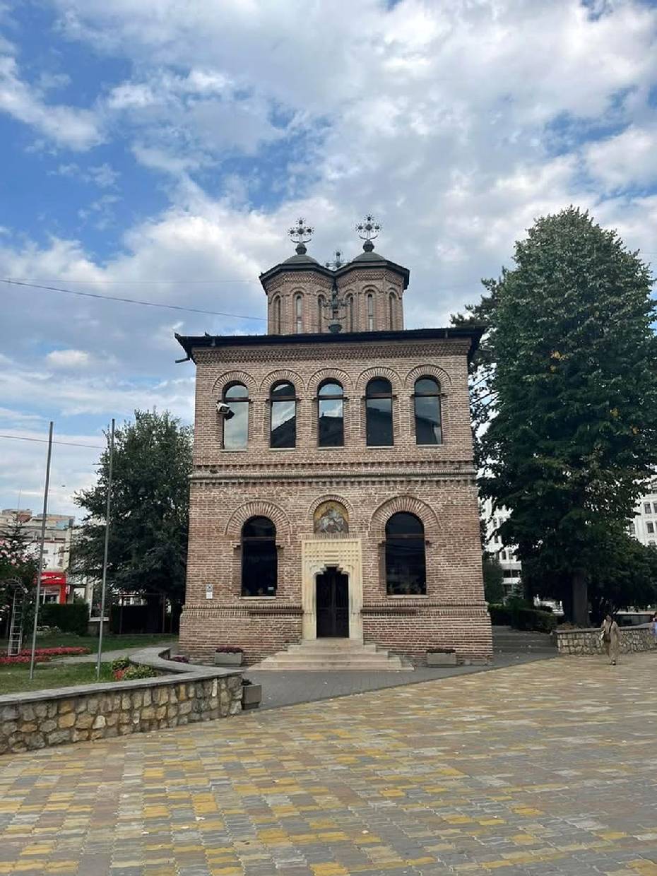 It was built in 1724 in the Brancoveanu style by the Greek monk Ioanichie Stratonikeas and is considered one of the most beautiful and important architectural monuments in the Romanian capital. The church is dedicated to the holy archangels Michael and Gabriel.