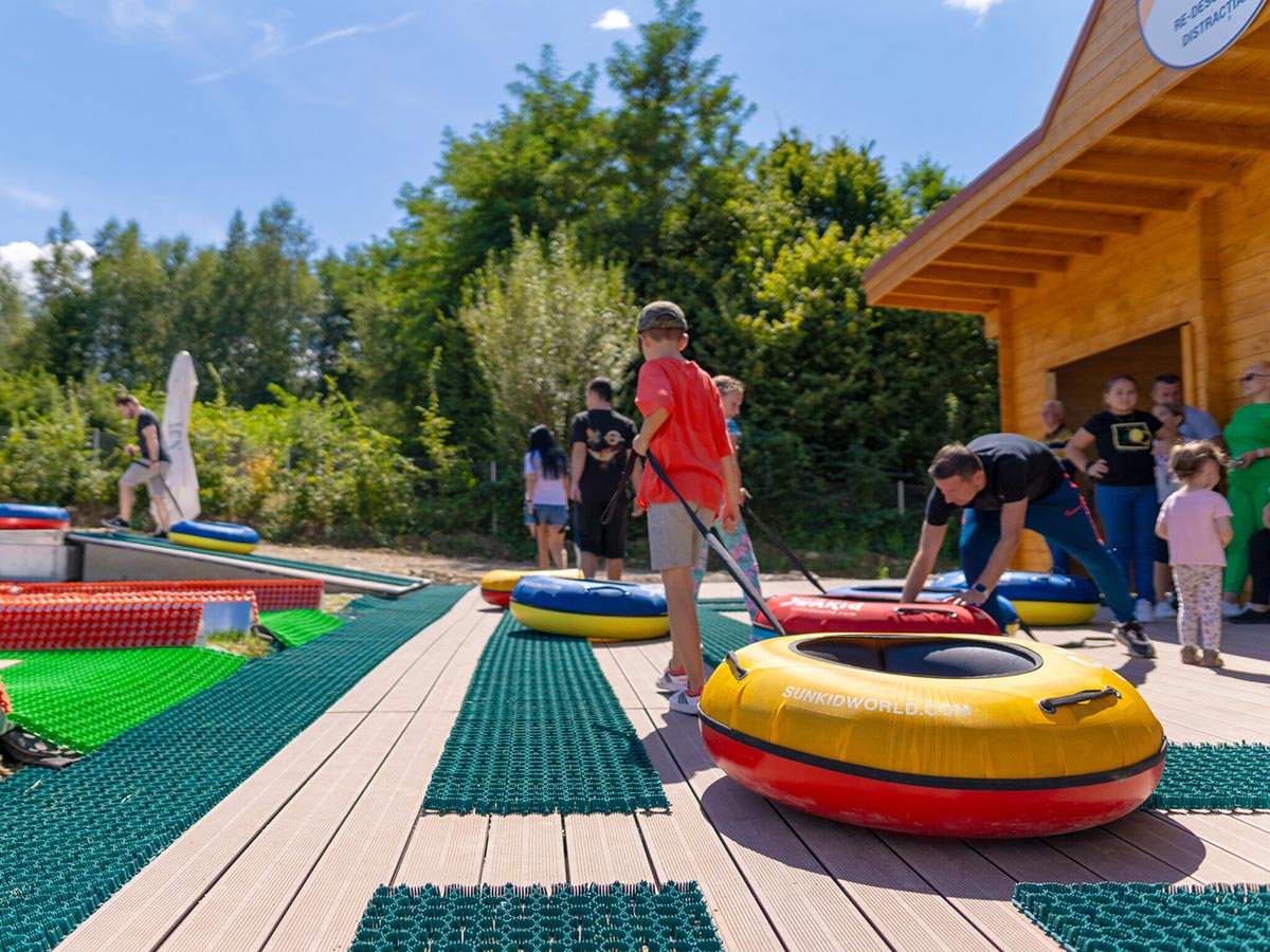 Pregătește-te pentru adrenalină pură pe una dintre cele mai iubite atracții din Brambura Park – pista de tubing te provoacă să zâmbești din mers!